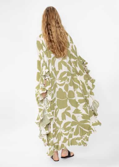 Vihreä kuviollinen kaftaani pehmeästä ja ilmavasta kankaasta. Tässä mallissa on väljä istuvuus, röyhelöiset reunat ja v-pääntie, jossa on tupsukoristeiset yksityiskohdat. Vyötärönauha. LENZING™ ECOVERO™ -viskoosikuidut on valmistettu kestävästä puusta ja selluloosasta, jotka on saatu sertifioiduista ja valvotuista lähteistä. Kuidut ovat saaneet EU:n ympäristömerkinnän merkiksi korkeiden ympäristövaatimusten täyttämisestä. LENZING™ ECOVERO™ -kuitujen valmistuksen tuottamat päästöt ja vesistöihin kohdistuva vaikutus ovat jopa 50 % pienemmät verrattuna perinteiseen viskoosiin. LENZING™ ja ECOVERO™ ovat Lenzing AG:n tavaramerkkejä.