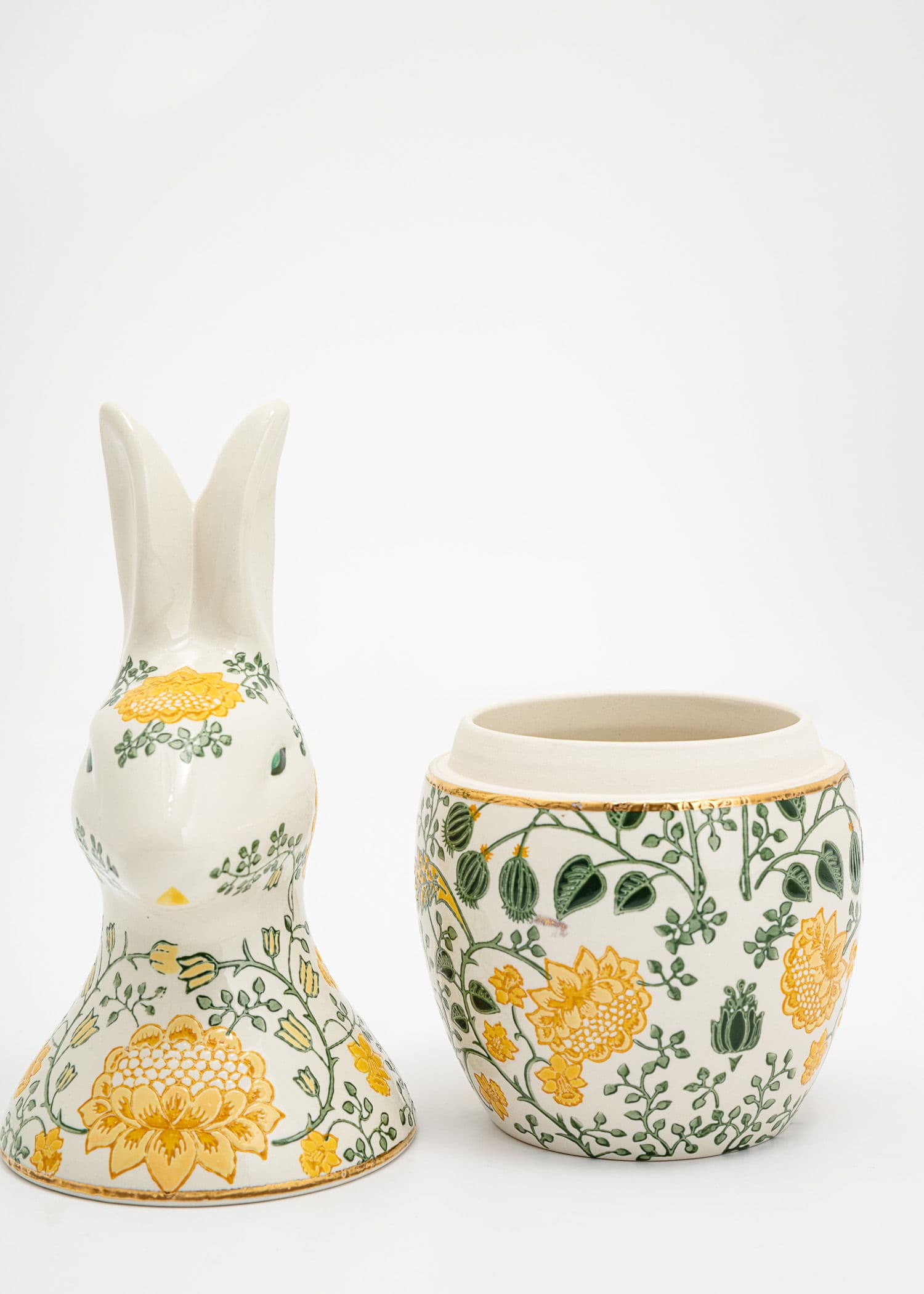 Pupun muotoinen kannellinen makeiskulho. Sopii täydellisesti pääsiäisherkkujen tarjoiluun. Saatavana kukallisena ja pilkullisena.