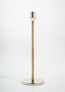 Stor ljusstake i mässing med en blank finish i järn. Ljusstaken har en virad rottingdetalj i mitten som skapar en fin kontrast.