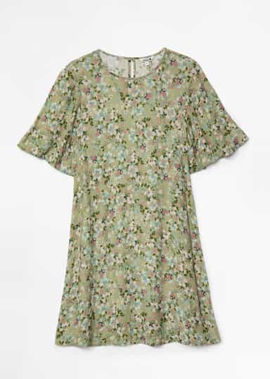 En grön tunika i ett underbart viskos moss crepe tyg som känns lätt och ledigt på kroppen. Klänningen har korta ärmar och rund halsringning samt stängd nyckelhålsknäppning bak. Tunikan går både att bära som klänning eller med jeans eller leggings under. LENZING™ ECOVERO™ viskosfiber är tillverkat av hållbart trä samt trämassa från certifierade och kontrollerande källor. Fibrerna håller höga miljövänliga standards och har blivit certifierade med EU:s miljömärke. Tillverkningen av LENZING™ ECOVERO™ fiber resulterar i 50% lägre utsläpp samt vattenanvändning jämfört med konventionell viskos. LENZING™ och ECOVERO™ är Lenzing AG:s varumärken.